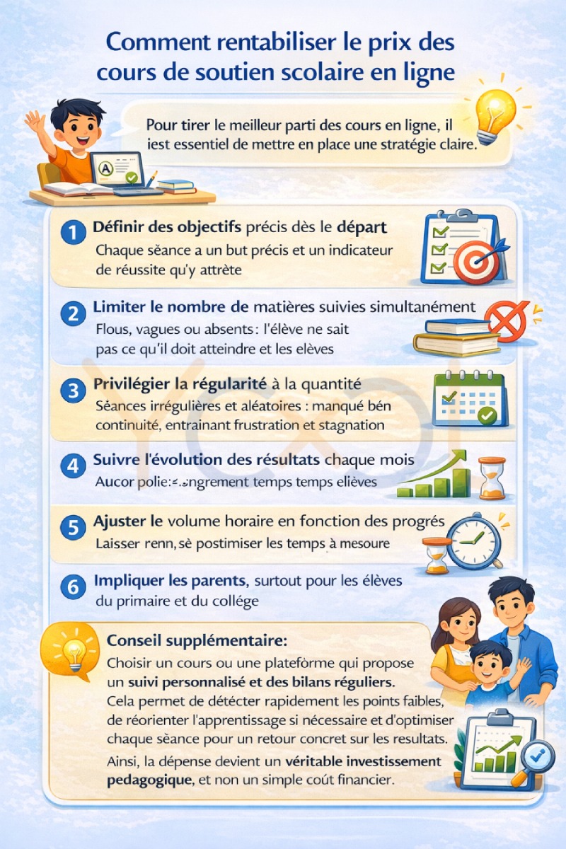 Le prix des cours de soutien scolaire en ligne au Maroc ne peut pas être jugé de manière simpliste. Lorsqu’il est intégré dans une démarche pédagogique claire, structurée et adaptée aux besoins réels de l’élève, il constitue un investissement éducatif rentable.